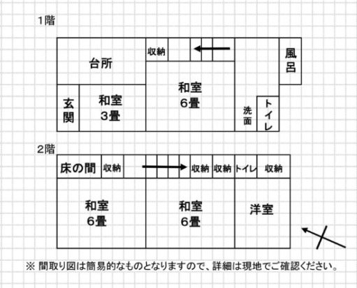 トイレ:1階 洋式/簡易水洗 2階 和式/汲み取り