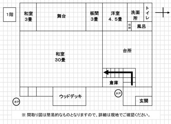 | 設備状況 | 水道:上水道 台所:プロパンガス 風呂:プロパンガス、灯油ボイラー トイレ:浄化槽 (2階は使用不可) |
