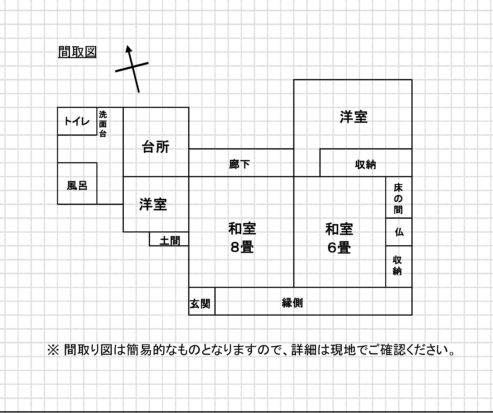 | 設備状況 | 水道:井戸 台所:プロパンガス 風呂:電気給湯器 トイレ:洋式(簡易水洗) |