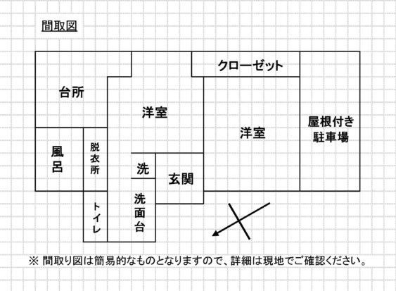 | その他 | 家財道具:無 (備え付け家具有り:テーブルセット、カーテン、テレビ、テレビ台、食器乾燥機、冷凍庫、掃除機、電子レンジ、ケトル ※不要な場合は、撤去する) 駐車場:車庫有1台 車庫無2台 家庭菜園:4㎡の花壇 菜園としても可 納屋・倉庫:無 付随した農地:無 動物:不可 ※2021年4月に全面リフォーム済み ※Wi-Fi無料(光回線 ルーター有り) ※エアコン3台設置(洋室×2、キッチン) |