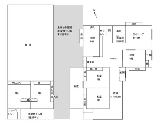 | 面積 | 床面積:132.69㎡(間取り:4DK)、別棟:床面積 概算30㎡(間取り:2K) 敷地面積:1012.56㎡(宅地) |