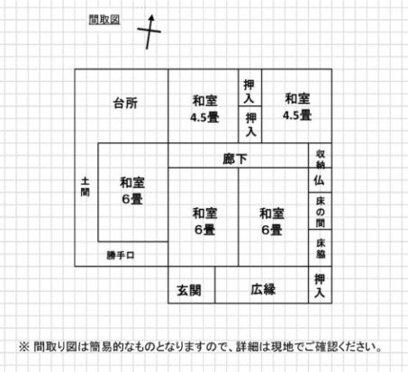 | その他 | 家財道具:有(入居者にて処分) 駐車場:車庫無10台 家庭菜園:無 納屋・倉庫:無 付随した農地:有(603㎡) ※農地価格に含め売却(農業委員会へ3条許可申請が必要) |